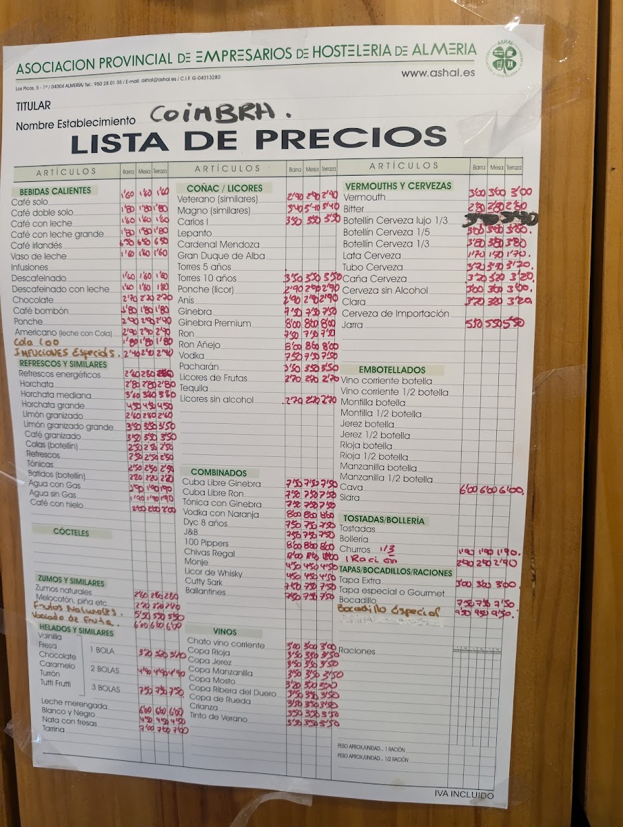 Cafetería Coimbra - Almería Menu